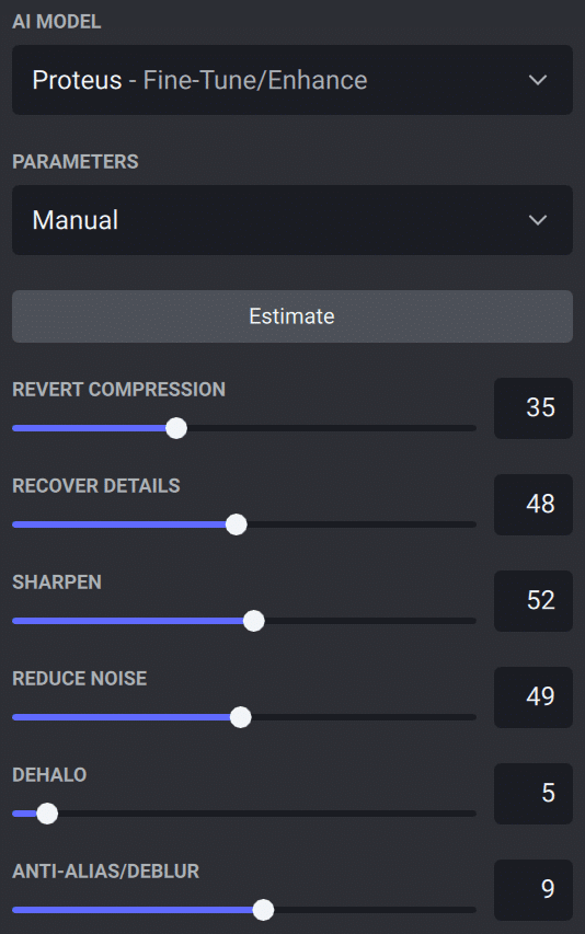 The models “Theia” and “Proteus” (incidentally, these are all figures from Greek mythology) can be adjusted in detail, e.g. to reduce compression artefacts, moiré or noise, to sharpen the images or to add some structure as noise or ‘grain’ to overly smooth images. Proteus even offers the option of analysing the material and suggesting suitable slider settings.